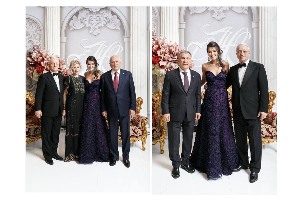Они светски вращаются в высшем обществе: вот на фото Колесовы в вечерних нарядах с Сергеем Чемезовым и его женой. А на другом снимке Диана приобнимает главу Татарстана Рустама Минниханова.