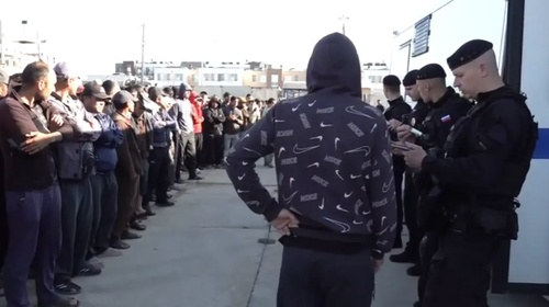 А вот август этого года. Возглавляемая Андреем Кикотем миграционная служба проводит рейд с собаками, проверяет 500 мигрантов на стройке на Пулковском шоссе. Несколько нелегалов депортируют.