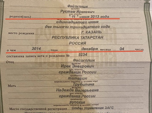 Файзуллина к тому времени уже повысили — он стал региональным министром строительства, архитектуры и ЖКХ (большой шишкой). Ну и, видимо, не по-государственному это — разводиться с женой из-за 25-летней любовницы, поэтому Файзуллин этого не сделал, а ребёнок, судя по дате рождения и дате выдачи свидетельства о рождении, полтора года жил вообще без каких-либо документов.