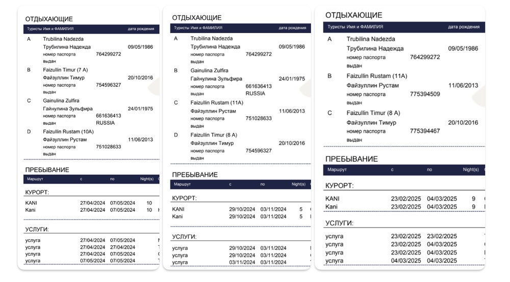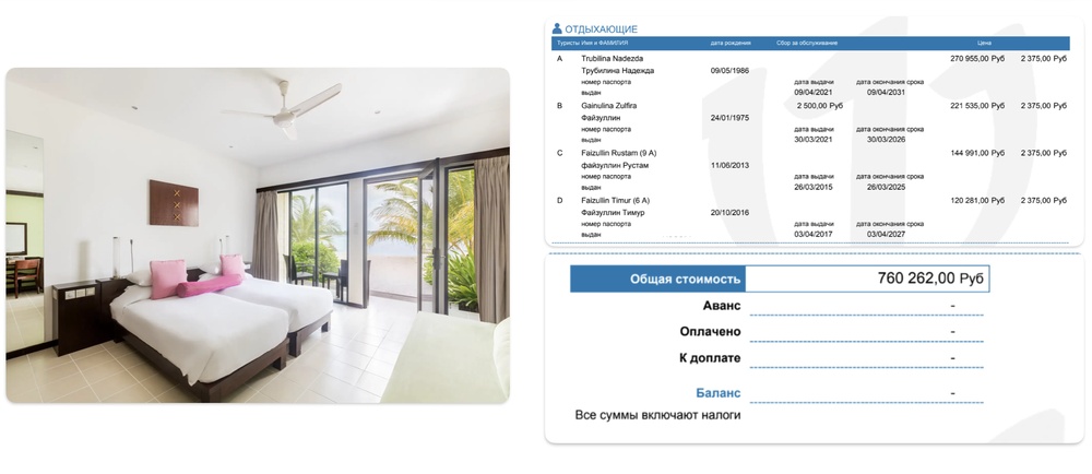 Но не отдохнули! И в апреле поехали еще раз, туда же. И опять два раза в 2024 году, и в 2025. Всего в нашем распоряжении есть счета семьи министра Файзуллина за 8 таких отпусков на общую сумму около 7 миллионов рублей.