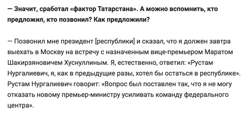 И несмотря на то, что его много раз приглашал работать в Москву бывший начальник, а ныне вице-премьер Марат Хуснуллин, его заставлял ехать в столицу глава Татарстана Минниханов, лично уговаривал Мишустин — Файзуллин всё равно не хотел. Но потом под напором сломался.