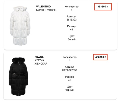 Но даже когда Надежде Трубилиной приходится бывать в холодной Москве, она там абсолютно точно не мерзнет. Благодаря усилиям Ирека Файзуллина ее греют не только батареи, но и безлимитный шоппинг в ЦУМе. Там она покупает себе куртку прада за 480к, пуховик валентино за 350 тысяч и много чего еще. Всего мы насчитали покупок в ЦУМе за пару лет на более чем 15 млн рублей.