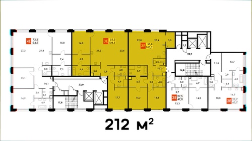 И вот на эти, их общая площадь 212 квадратных метров.