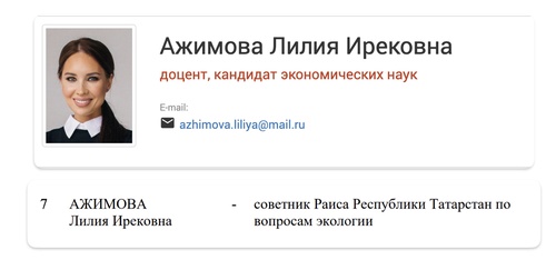 Лилия преподает в КГАСУ, но основной доход получает как главный эколог в госкомпании «Татнефтехиминвест-холдинг». А еще она советник Рустама Минниханова по вопросам экологии.