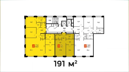 На вот эти соседние квартиры, общей площадью 191 квадратный метр.